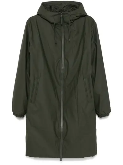 dark green insulated design padded design waterproof windproof front two-way zip fastening drawstring hood long sleeves rubberised logo to the sleeve elasticated cuffs two side welt pockets full lining straight hem mid-length When buying this unisex item, keep in mind that it is graded in standard men's sizing.