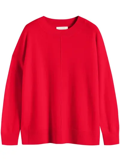 red wool-cashmere blend fine knit ribbed trim crew neck drop shoulder long sleeves straight hem