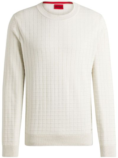 white cotton knitted construction crew neck long sleeves ribbed cuffs and hem