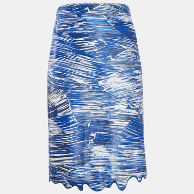 Kenzo Blue Printed Cotton Blend Embroidered Hem Skirt S 1044193 - 1