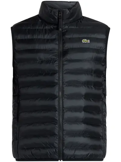 black recycled polyester embroidered logo to the front front zip fastening padded design stand-up collar