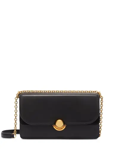 black calf leather chain-link shoulder strap foldover top main compartment internal zip-fastening pocket