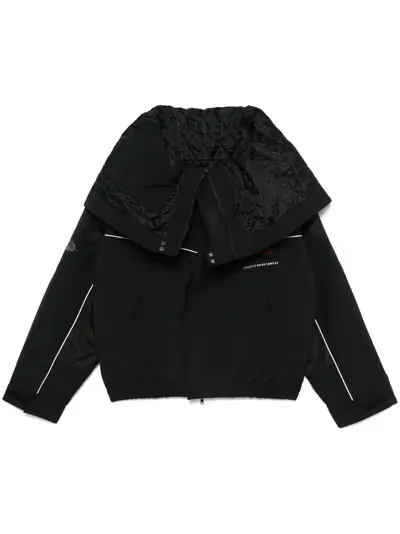 black ripstop texture wide collar front two-way zip fastening front concealed touch-strap fastening elasticated adjustable straps to the neck drop shoulder long sleeves touch-strap cuffs reflective piped-trim detailing embroidered logo at the chest chest flap pocket two side zip-fastening pockets internal patch pocket quilted lining elasticated hem When buying this unisex item, keep in mind that it is graded in standard men's sizing.