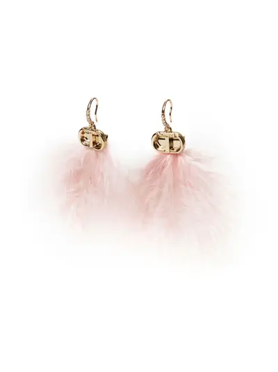 light pink gold-tone logo plaque feather detailing hook fastening crystal embellishment for pierced ears