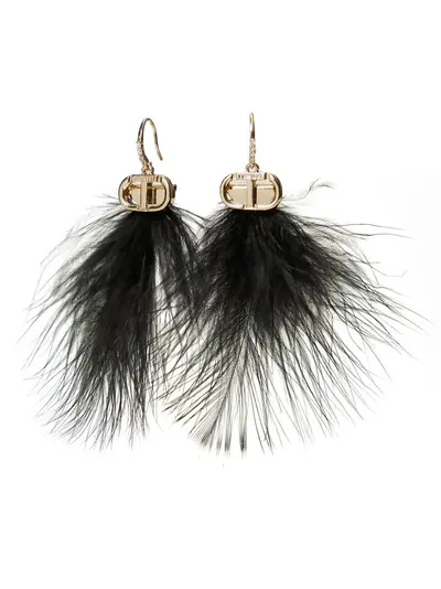 gold-tone/black brass/feather detailing appliqué logo for pierced ears These earrings come as a pair.