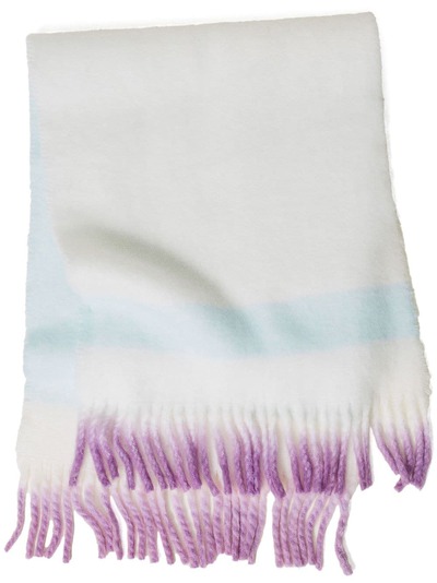white/multicolour knitted construction stripe detailing fringed edge wraparound style