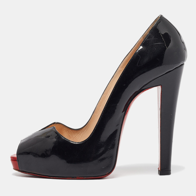 Christian Louboutin Black Patent Leather Carroseria Peep Toe Pumps Size 39 1048193 (чёрный, lpn27734029)