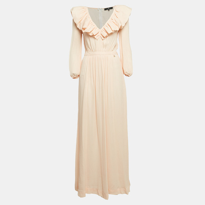 Elisabetta Franchi Orange Checks Crepe Maxi Dress XL 1046550 - 1 small