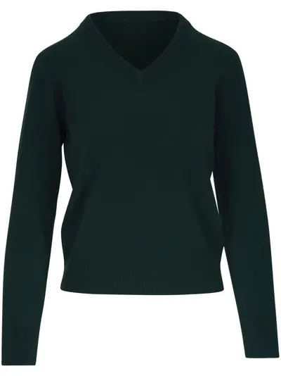 dark green cashmere slip-on style ribbed trim V-neck long sleeves