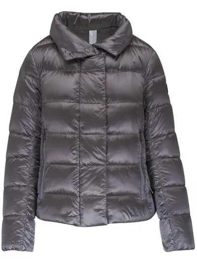 ash grey duck down padded design concealed front fastening stand-up collar two side zip-fastening pockets long sleeves full lining straight hem
