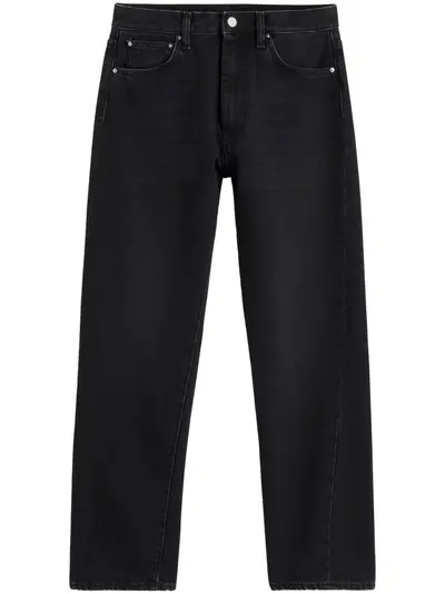 black organic cotton denim front button and zip fastening mid-rise belt loops classic five pockets straight leg