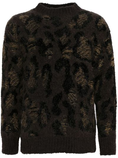 brown/black knitted construction distressed effect brushed effect crew neck long sleeves ribbed cuffs and hem straight hem
