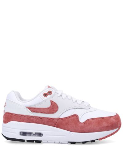 white/red calf suede front lace-up fastening branded heel counter signature Swoosh logo detail logo patch at the tongue round toe signature Air Max sole