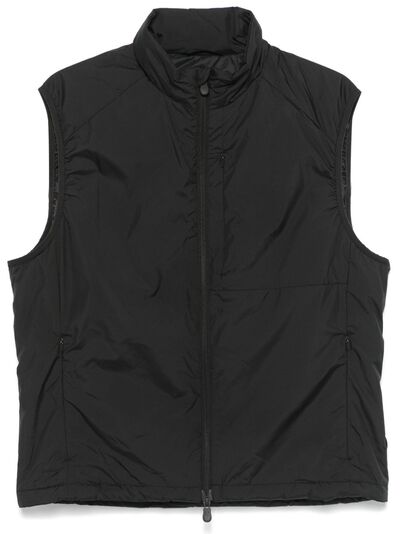 black recycled polyester front two-way zip fastening high neck sleeveless zip-fastening chest pocket two side zip-fastening pockets logo patch to the rear drawstring hem