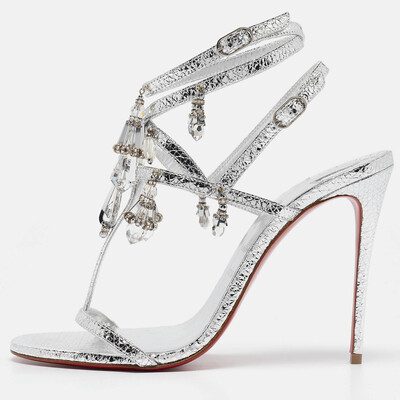 Christian Louboutin Silver Leather Bombina Pampila Ankle Strap Sandals Size 39 1047260 (lpn27763453)