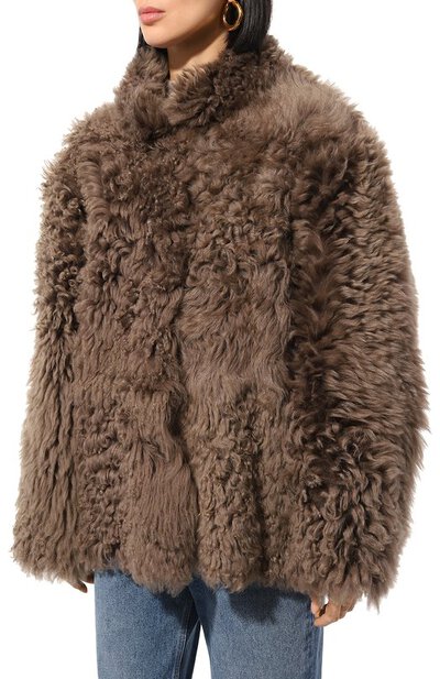 Шубу из длинноворсовой овчины можно вывернуть, и носить дубленой стороной наружу. Модель с воротником-стойкой, двумя внешними и парой внутренних карманов застегивается на пуговицы.
