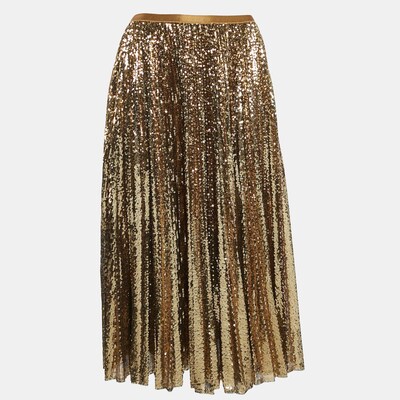 Polo Ralph Lauren Gold Sequin Plisse Midi Skirt XL 1048434 - 1 small