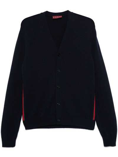 midnight blue cashmere ribbed knit signature Web-stripe trim front button fastening V-neck long sleeves straight hem