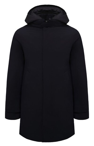 Парку Mikael с воротником-стойкой сшили из эластичного полиамида. Модель на утином пуху дополнили парой карманов по бокам и двумя внутри. В комплект входит съемная стеганая вставка с капюшоном. Куртка застегивается встречной молнией, прикрытой планкой с кнопками.