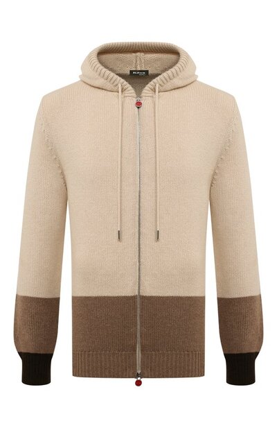 Разноцветный кардиган из кашемира дополнили регулируемым капюшоном и встречной молнией с брендированными пуллерами. Модель органично впишется в повседневный образ в схожей цветовой гамме.