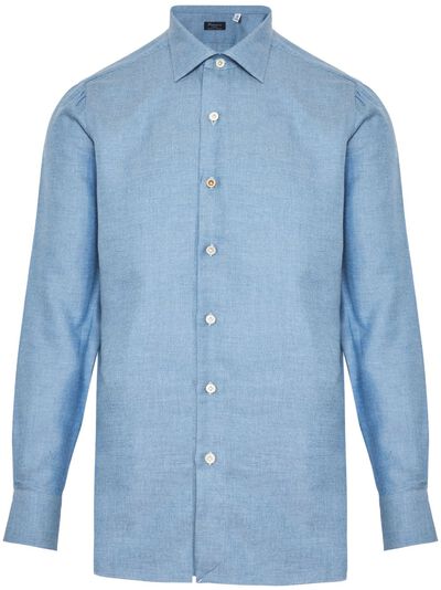blue cotton-cashmere blend front button fastening cutaway collar long sleeves buttoned cuffs straight hem