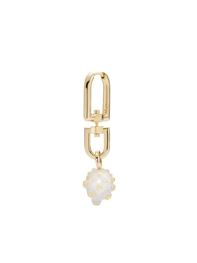 18kt gold plated silver polished finish pearl pendant lever fastening This is a single earring. Normal everyday use and external agents may reduce the lustre of gemstones and gold surfaces. To maintain, use specific, non-abrasive products specially meant for cleaning jewellery.