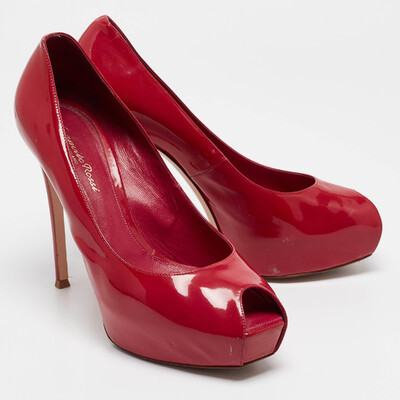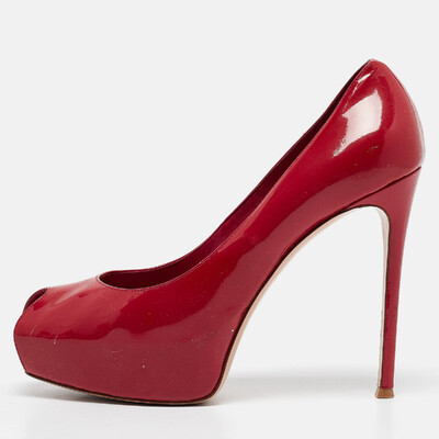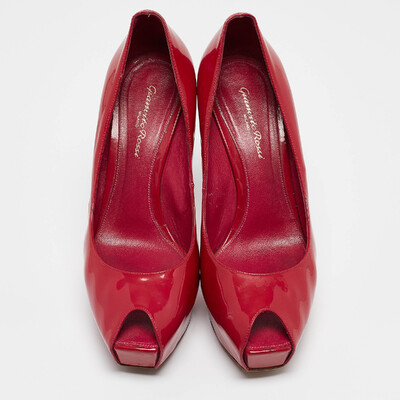 Gianvito Rossi Red Patent Leather Peep Toe Pumps Size 39.5 1052427 (красный, lpn27803386)