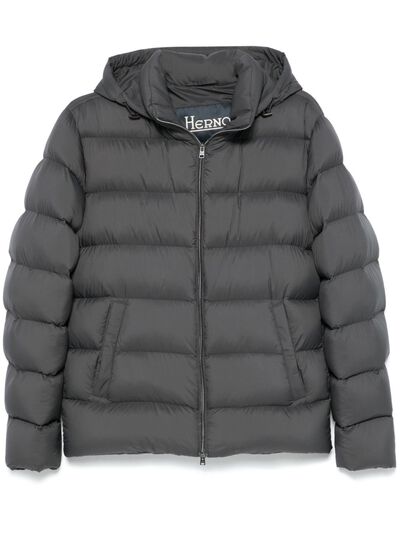 anthracite grey matte finish front two-way zip fastening quilted detachable drawstring hood stand-up collar long sleeves two front welt pockets down-feather filling drawstring hem