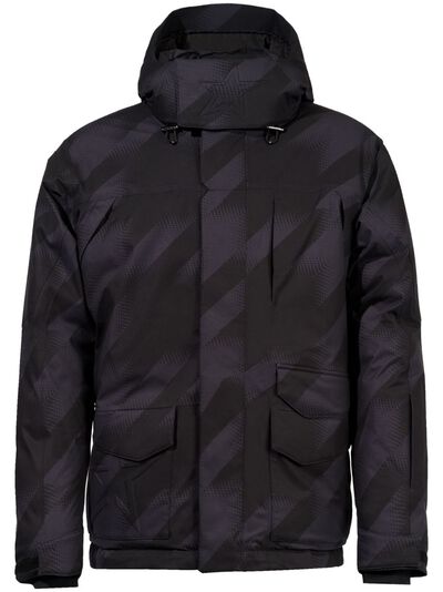 black front zip fastening houndstooth pattern classic hood long sleeves two side flap pockets internal logo patch