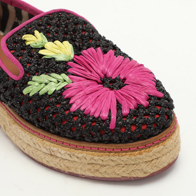 These slippers from Missoni are the epitome of comfort and luxury. Crafted from woven raffia, they embody a refined construction and are functional with leather insoles. The floral detailing on the upper enhances the appeal of the pair and it is complete with espadrille trims.