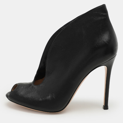 Gianvito Rossi Black Leather Vamp Booties Size 35.5 1053205 (чёрный, lpn27810919)