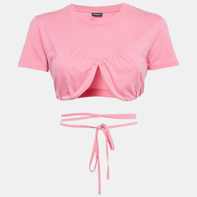 Jacquemus Pink Cotton Knit Underwired Lace-Up Baci Crop Top XS 1050671 (розовый, lpn27811092)