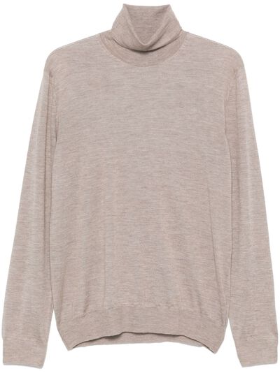 beige cashmere-silk blend fine knit mélange effect roll neck ribbed trim long sleeves straight hem