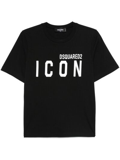 black cotton jersey texture Icon print to the front crew neck logo print to the front short sleeves straight hem