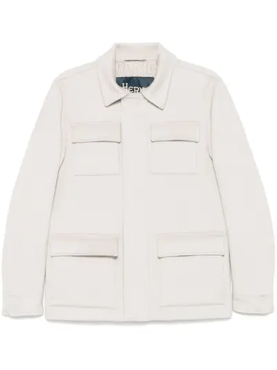 beige cashmere brushed finish padded design front press-stud and zip fastening classic collar long sleeves press-stud fastening cuffs four front flap pockets internal drawstring fastening waist two side inset pockets internal jetted pockets quilted lining straight hem