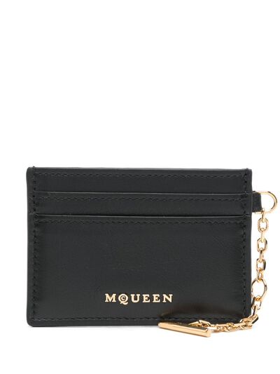 black calf leather smooth grain logo lettering chain-link detailing logo-engraved T-bar pendant card slots