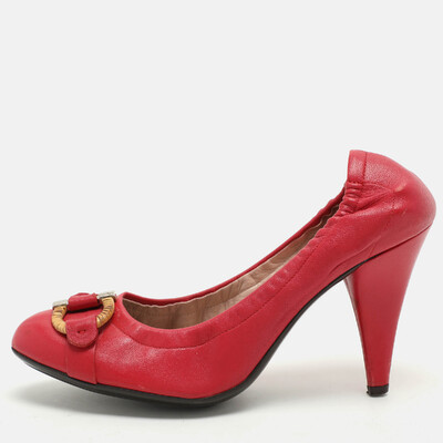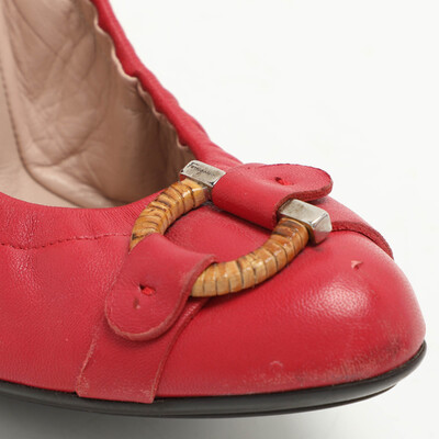 Salvatore Ferragamo Pink Leather Embellished Scrunch Pumps Size 38 1053158 - 1