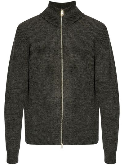 grey wool blend ribbed knit front zip fastening long sleeves ribbed cuffs and hem straight hem