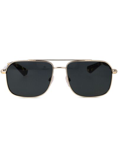 gold-tone acetate/metal pilot frame raised bridge grey tinted lenses UV-protective lenses nose pads logo-engraved arm straight arms curved tips These glasses come with a protective case.