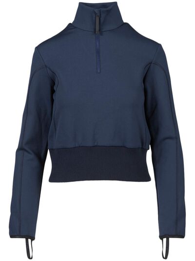 navy blue stretch-design fleece texture half front zip fastening high neck ribbed hem long sleeves straight hem