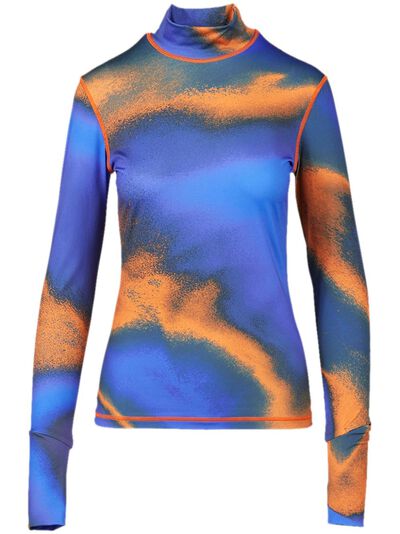 blue/multicolour stretch-design abstract pattern print high neck long sleeves straight hem