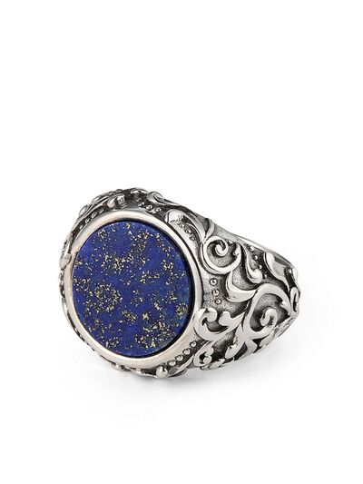 silver-tone blue sterling silver lapis lazuli textured finish slip-on style