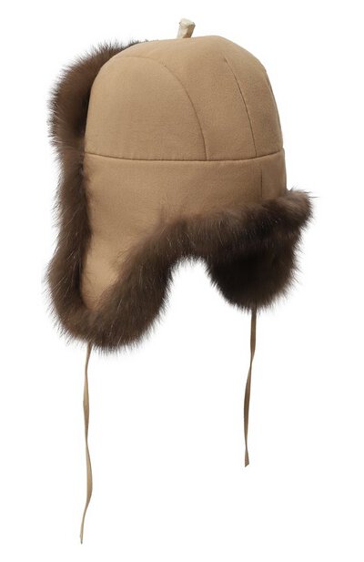 Шапку-ушанку сделали легкой и при этом особенно теплой. Верх модели выполнили из нежного кашемира, а внутреннюю отделку — из густого меха баргузинского соболя с характерным блеском и уникальной сединой. Материал тонкой выделки получился пластичным, поэтому аксессуар с длинными завязками из бархатистой замши плотно сидит на голове.