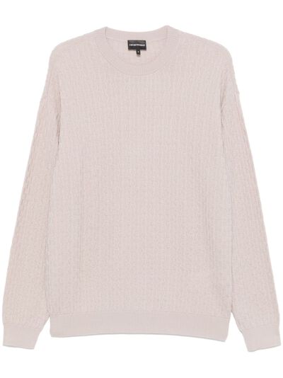 almond beige wool 3D-knit construction ribbed trim crew neck drop shoulder long sleeves straight hem
