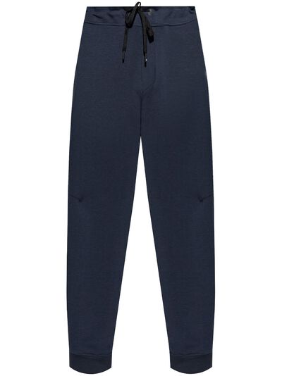 navy blue recycled polyester blend drawstring fastening waist elasticated waistband two side inset pockets side zip-fastening pocket logo print at the leg elasticated ankles