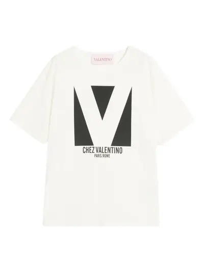 white cotton crew neck short sleeves Chez Valentino print at the chest straight hem