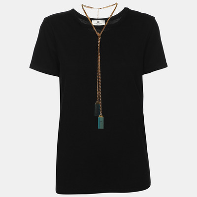 Elisabetta Franchi Black Cotton Round Neck Chain T-Shirt S 1055259 (чёрный, lpn27859891)