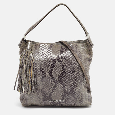 Michael Kors Grey Snakeskin Embossed Leather Bedford Shoulder Bag 1054626 (lpn27859916)