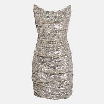Reem Acra Silver Sequin Ruche Strapless Mini Dress L 1024458 (lpn27866627)