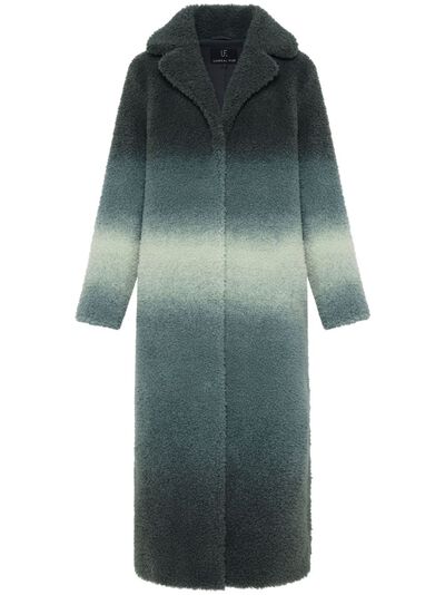 green recycled polyester faux shearling gradient effect concealed front fastening notched lapels long sleeves rear slit